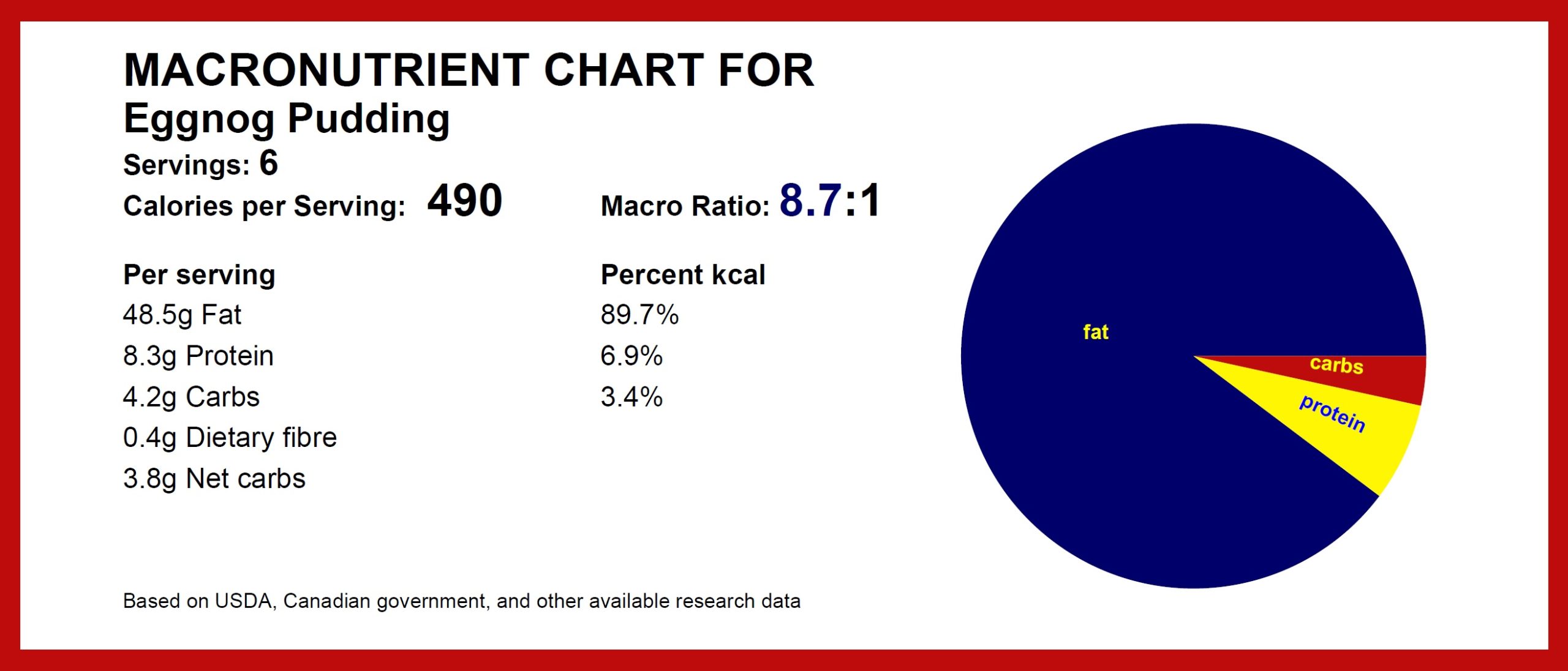 5. To serve, whip the heavy cream to a stiff stage. Garnish with a dollop of this whipped cream and top with a sprinkle of either grated nutmeg or cinnamon, and, if desired, sugar free cranberries. Enjoy!
